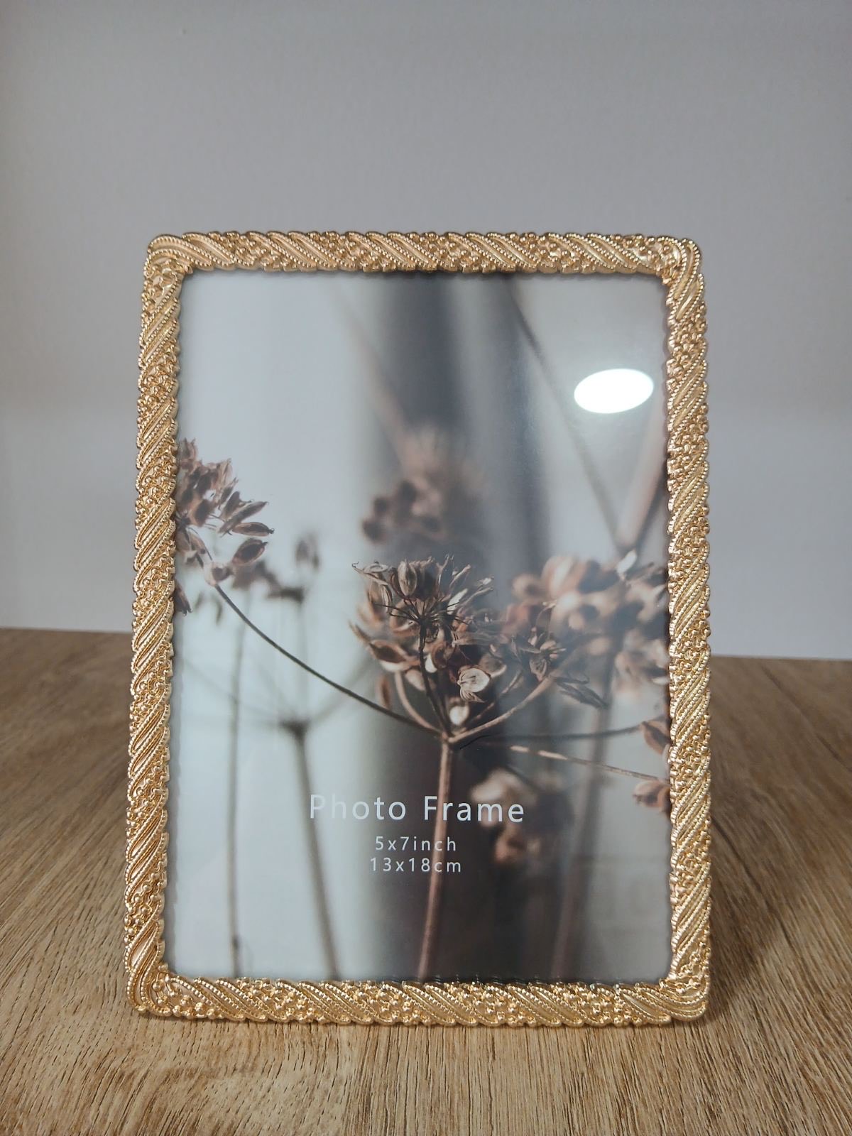 Δώστε λάμψη στις αναμνήσεις σας! Αυτή η χρυσή κορνίζα με το ιδιαίτερο ανάγλυφο πλέγμα είναι η ιδανική επιλογή για να διακοσμήσετε το σαλόνι ή το κομοδίνο σας, προσφέροντας έναν ζεστό και premium χαρακτήρα.